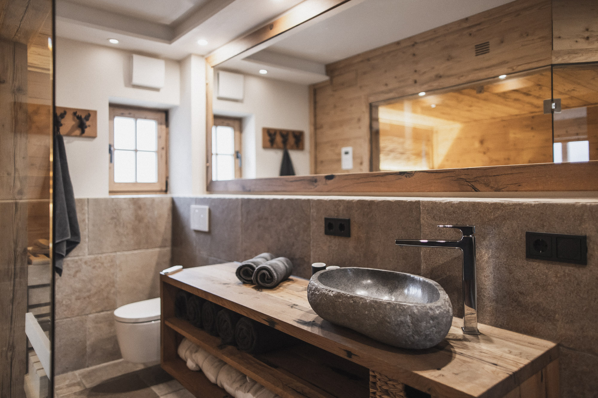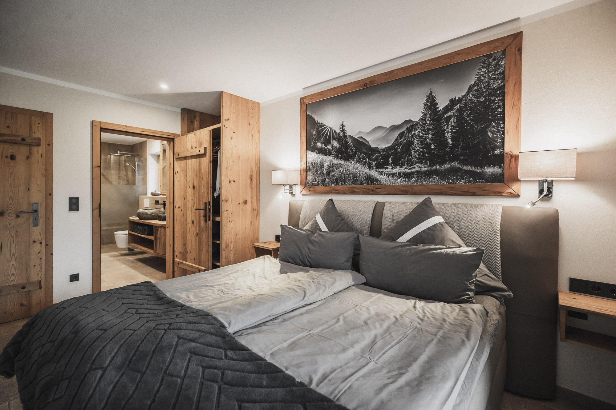 Entworfen für die, die Ruhe, Schönheit und Eleganz zu schätzen wissen, bietet dieses Chalet eine Oase der Entspannung und des Luxus. Hier kann man den Alltag hinter sich lassen und sich in eine Welt der Ruhe und Gelassenheit zurückziehen. Mit drei separaten Schlafzimmern, zwei davon mit eigenem Bad, einer großzügigen Sauna mit großer Glasfront und einem Außenwhirlpool ist das Chalet Bergsucht der ideale Ort für eine Auszeit. Die hochwertigen Boxspringbetten, das großzügige Wohnzimmer mit Holzkamin und die Fußbodenheizung unter den Fliesenböden verleihen jedem Raum eine wohlige Wärme und Behaglichkeit. Von den Balkonen und Terrassen mit Westausrichtung aus kann man den beeindruckenden Blick auf die umliegenden Berge genießen und die Sonne untergehen sehen. Mit seiner 5-Sterne-DTV-Klassifizierung steht das Chalet Bergsucht für höchste Qualität und Exklusivität.